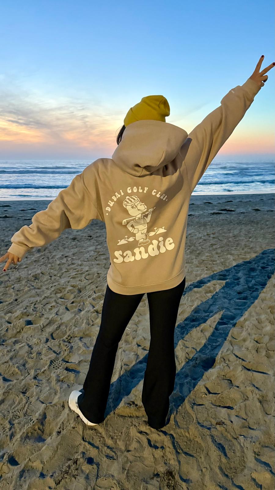 The Sandie Bunker Beige hoodie has become an all time favorite, and for good reason. This hoodie features 100% premium fleece cotton, lined hoodie, and cotton ribbed hem. It's oversized and thick material make it a go-to for early morning tee times, late night drinks at the 19th hole, or even just lounging around the house when you're thinking about golf.