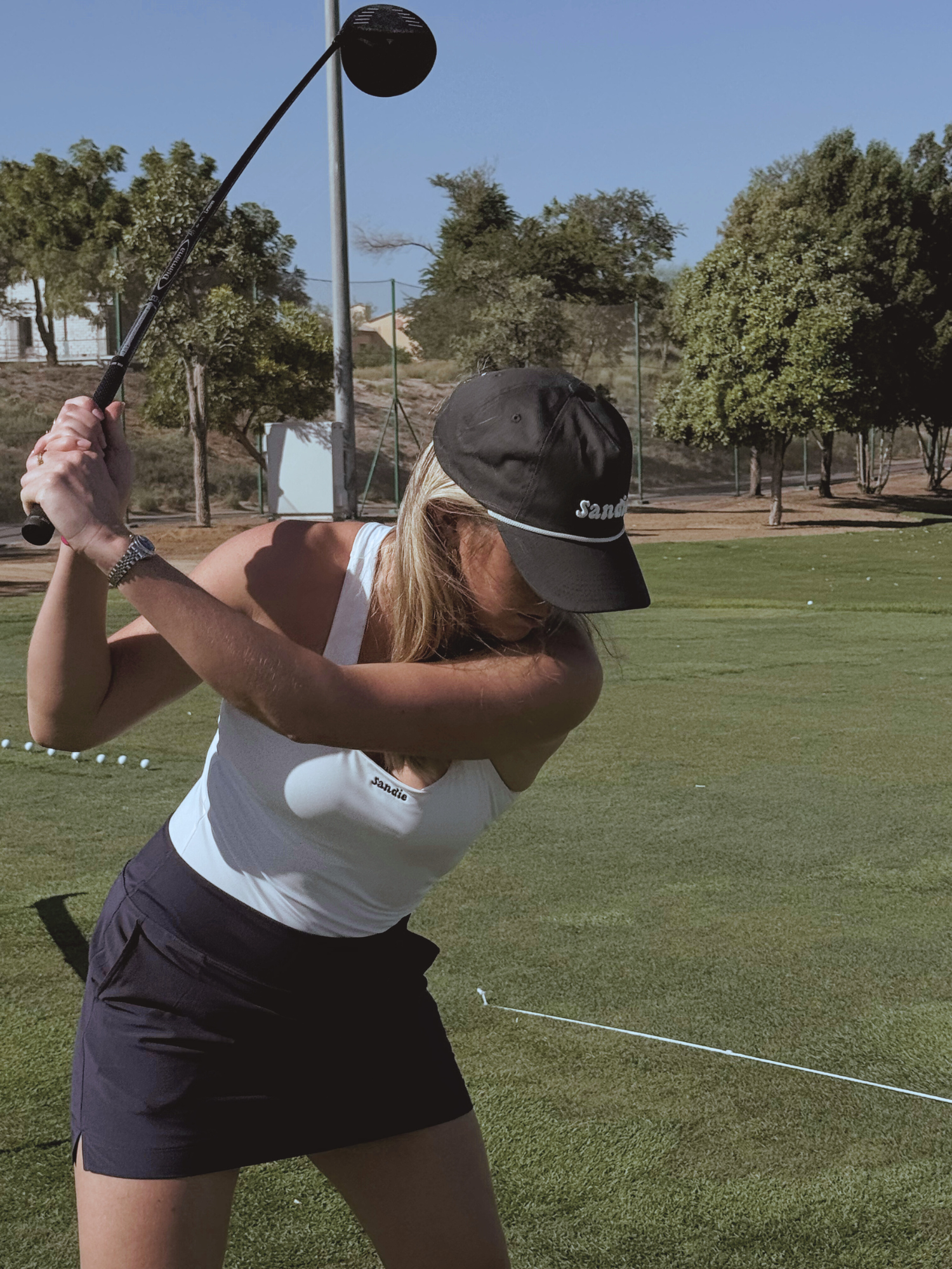Elevate your golf look with the Sandie Rope Hat, a perfect blend of vintage style and everyday comfort. Featuring a signature rope detail across the brim, this unstructured hat offers a relaxed fit that honors the modern day golfer, with the tradition of the 1950's design.
